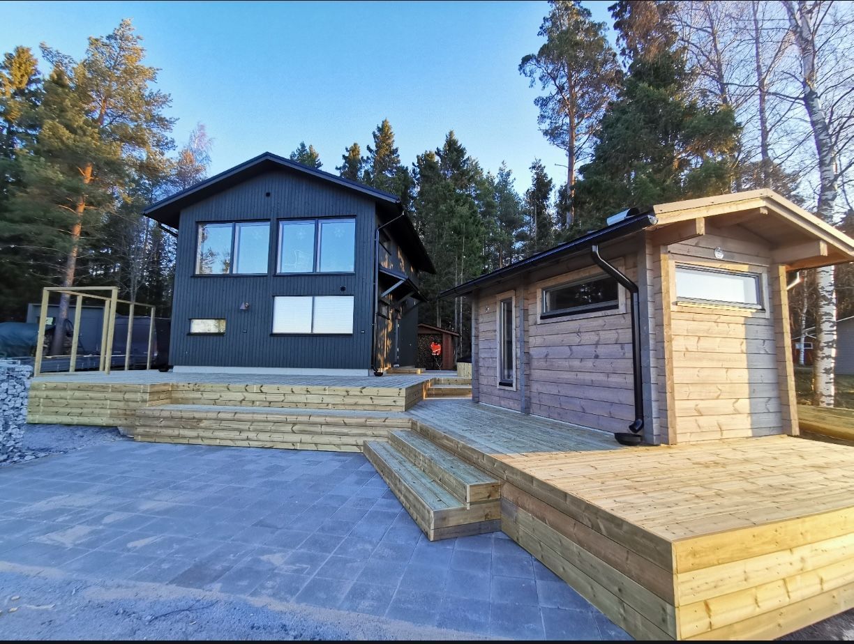 - Mindre byggnader som tex. förråd, bastu, avfallstak helt färdigställda inomhus.